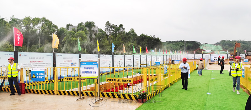 4、工程新技術(shù)新工藝應用。GRF裝配式護坡工藝、拉森鋼板樁工藝、安全防護工具化、360度高壓霧樁噴淋系統(tǒng)和微頂管工藝展示。