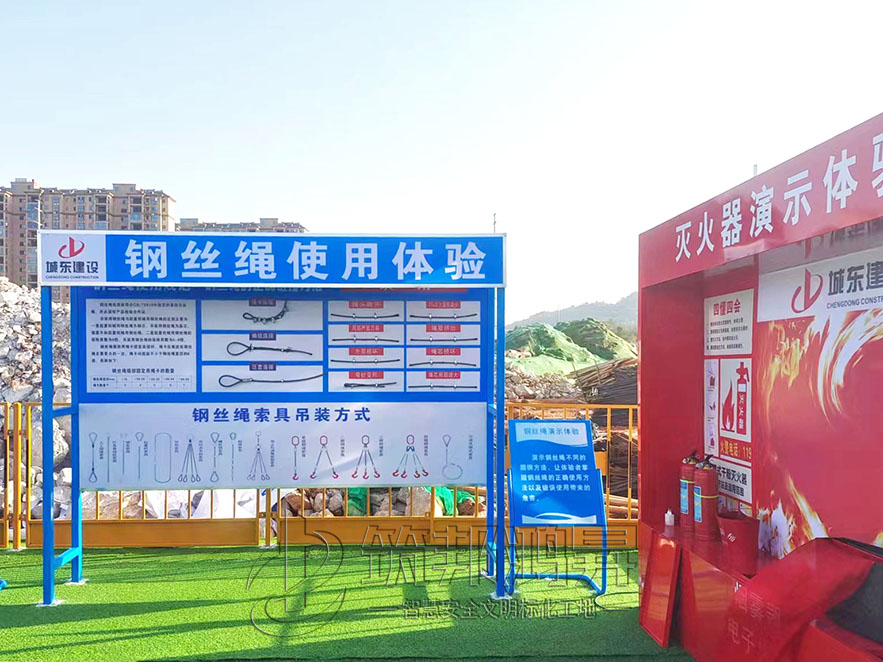 此次合作的安全教育培訓(xùn)體驗(yàn)區(qū)設(shè)備包括了安全鞋/帽撞擊體驗(yàn),安全帶使用體驗(yàn)、安全防護(hù)用品展示體驗(yàn)、綜合用電演示體驗(yàn)、鋼絲繩使用體驗(yàn)、班前講評(píng)臺(tái),平衡木體驗(yàn)、滅火器演示體驗(yàn)等。另還有工地茶水亭等標(biāo)化產(chǎn)品。