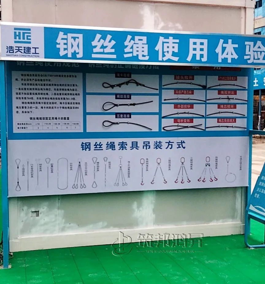 此次合作的工地安全體驗館建設(shè)包括了鋼絲繩使用體驗、安全帽/鞋撞擊體驗、綜合用電體驗、滅火器演示體驗、機械傷害體驗、重物搬運體驗、安全急救培訓(xùn)體驗等十幾項設(shè)備。標準款采用鋼結(jié)構(gòu)組裝式設(shè)計,高溫烤漆不易褪色,顏色鮮艷更美觀,設(shè)計制作安裝一站式服務(wù)。筑邦安排專車送貨到工地,同時安排專業(yè)的安裝團隊來到長沙工地現(xiàn)場,進行專業(yè)安裝。項目相關(guān)負責人驗收后,十分滿意。