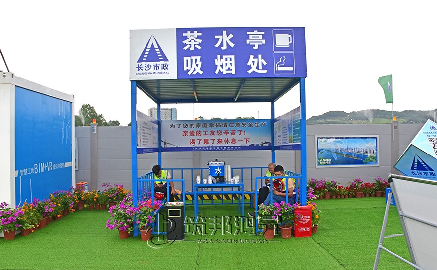 6月21日,2022年長(zhǎng)沙市建筑工程質(zhì)量管理和安全生產(chǎn)標(biāo)準(zhǔn)化觀摩會(huì)在長(zhǎng)沙市市政工程承辦的靳江河西岸綜合整治工程設(shè)計(jì)施工總承包(EPC)項(xiàng)目舉行。筑邦鴻昇系列文明標(biāo)化產(chǎn)品助力。