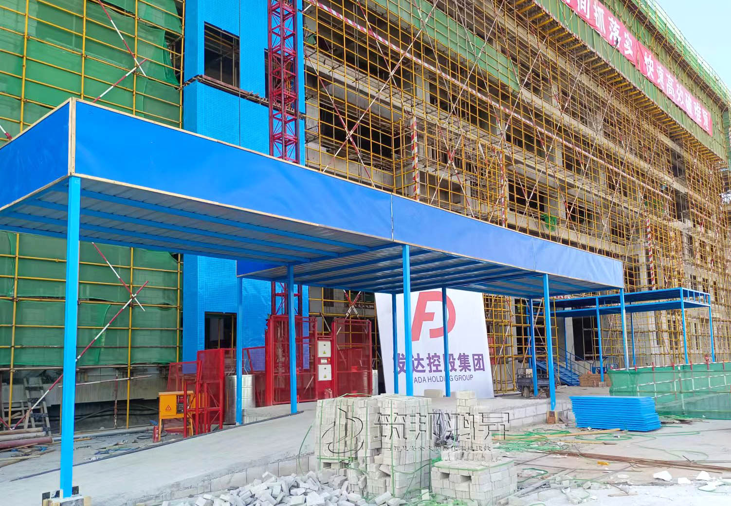 此次合作的安全標化產(chǎn)品還包括了樓層防護門、人貨電梯防護棚等設備。筑邦安排專車送貨到江西工地,同時安排了專業(yè)人手迅速到工地加班加點完成安裝。