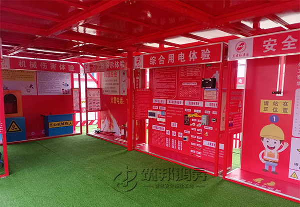 【筑邦鴻昇】安全體驗綜合體科學(xué)組合,占地面積小,美觀大氣,裝在工地就是一個醒目的風(fēng)景點,大大提升了工地項目的形象。整體共搭建三層,更加大氣。一體化多功能無差別體驗。走進(jìn)體驗區(qū),第一層設(shè)置安全防護(hù)用品展示體驗、安全帶體驗、綜合用電體驗、安全帽撞擊體驗、滅火器演示體驗、機(jī)械傷害體驗等體驗。第二、三層設(shè)置洞口墜落體驗、重物搬運體驗、爬梯體驗,以及新式施工電梯防護(hù)門套裝、各種施工護(hù)欄、卸料平臺、塔吊護(hù)欄等標(biāo)化設(shè)備展示。(除去洞口墜落體驗、安全帶體驗等主要設(shè)備,其他體驗設(shè)備和安全標(biāo)化產(chǎn)品展示皆可定制,可按照客戶實際需求來定制。)